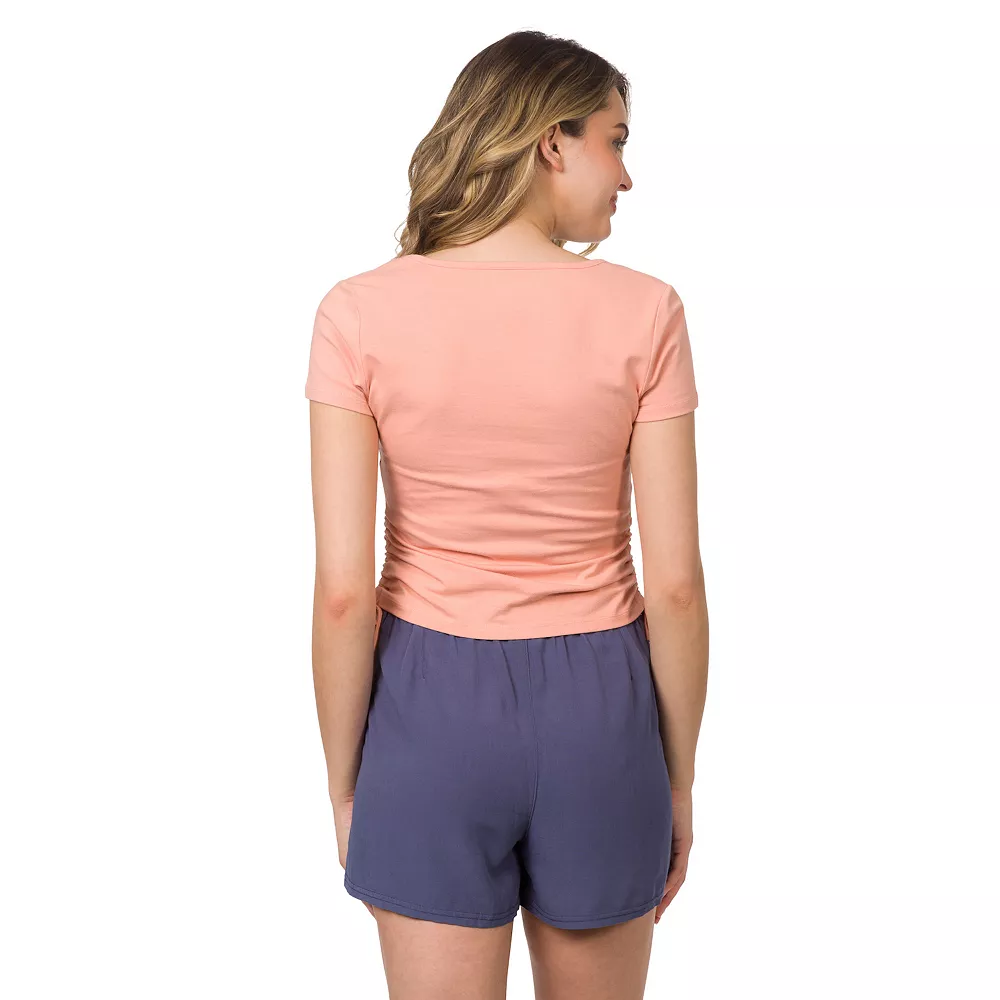 Get a casually cute and comfortable look in this juniors’ drawstring tee from Hurley.