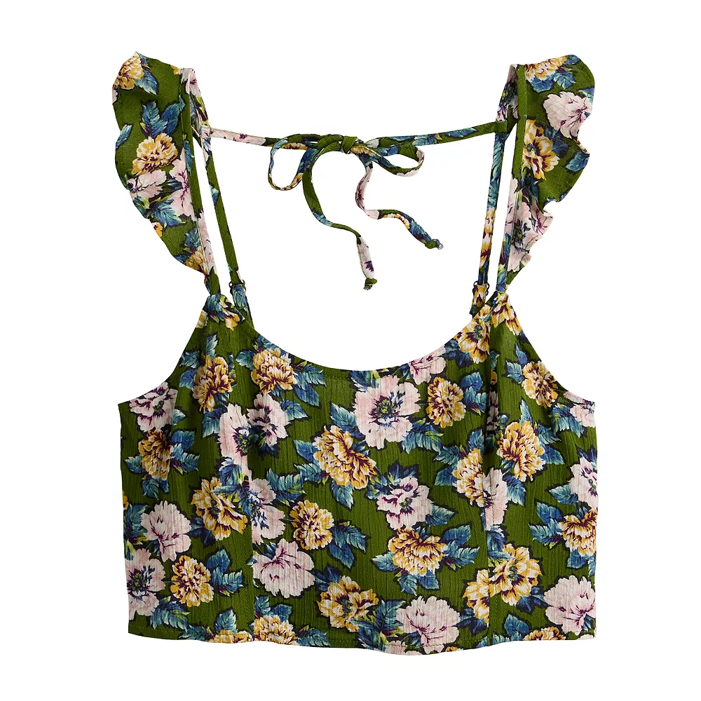 Pair this juniors’ cropped floral top from Live To Be Spoiled with the matching pants for a cute, put-together look.