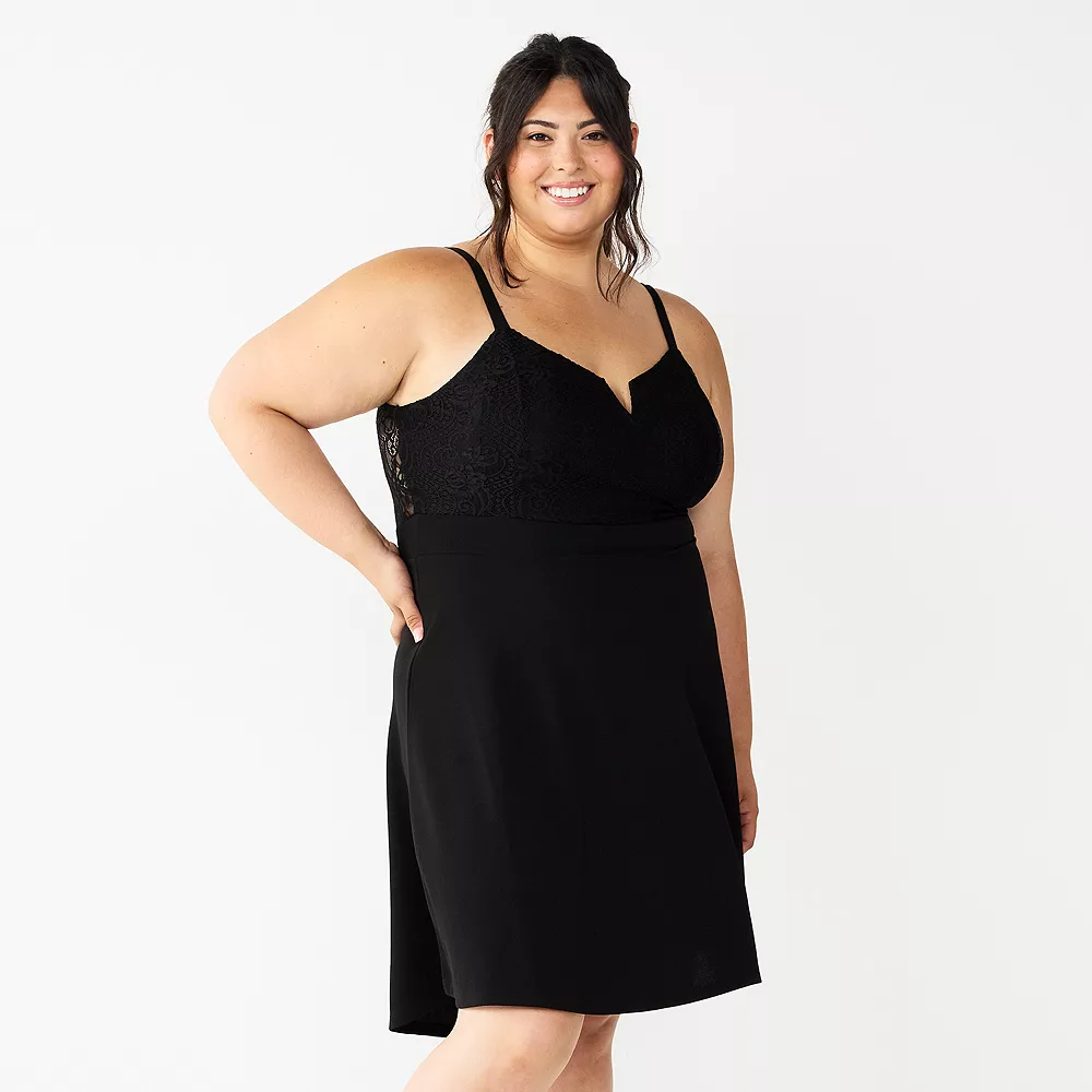 Kick your style up a notch with this juniors’ high-low skater dress from Almost Famous!
