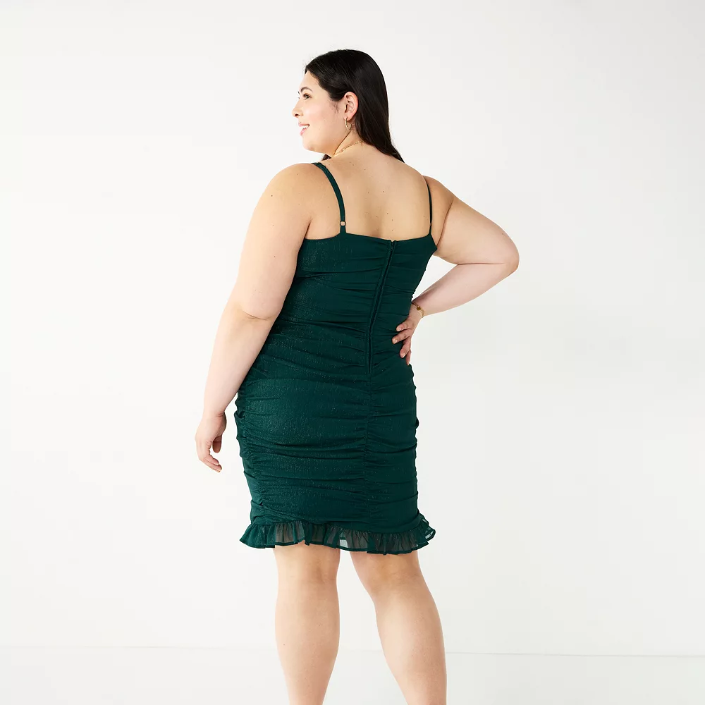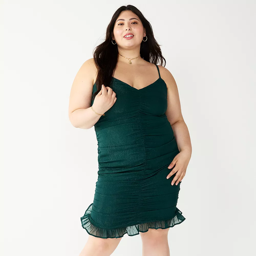 Turn heads when you rock this juniors’ ruched mini bodycon dress from Speechless!