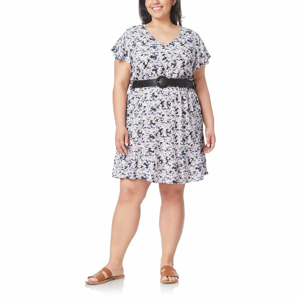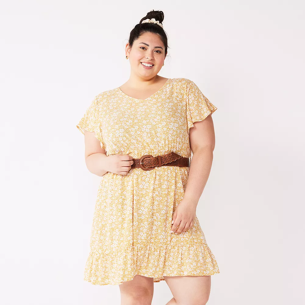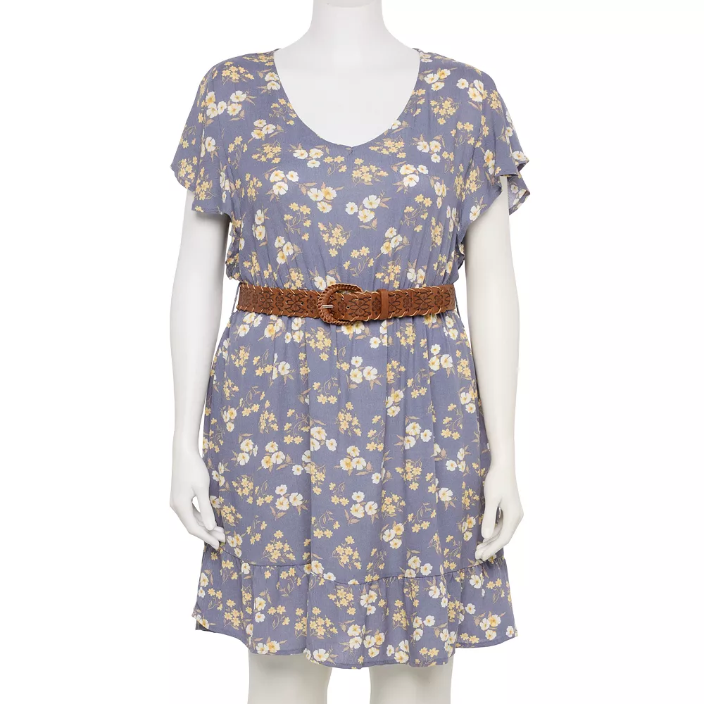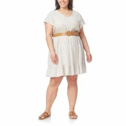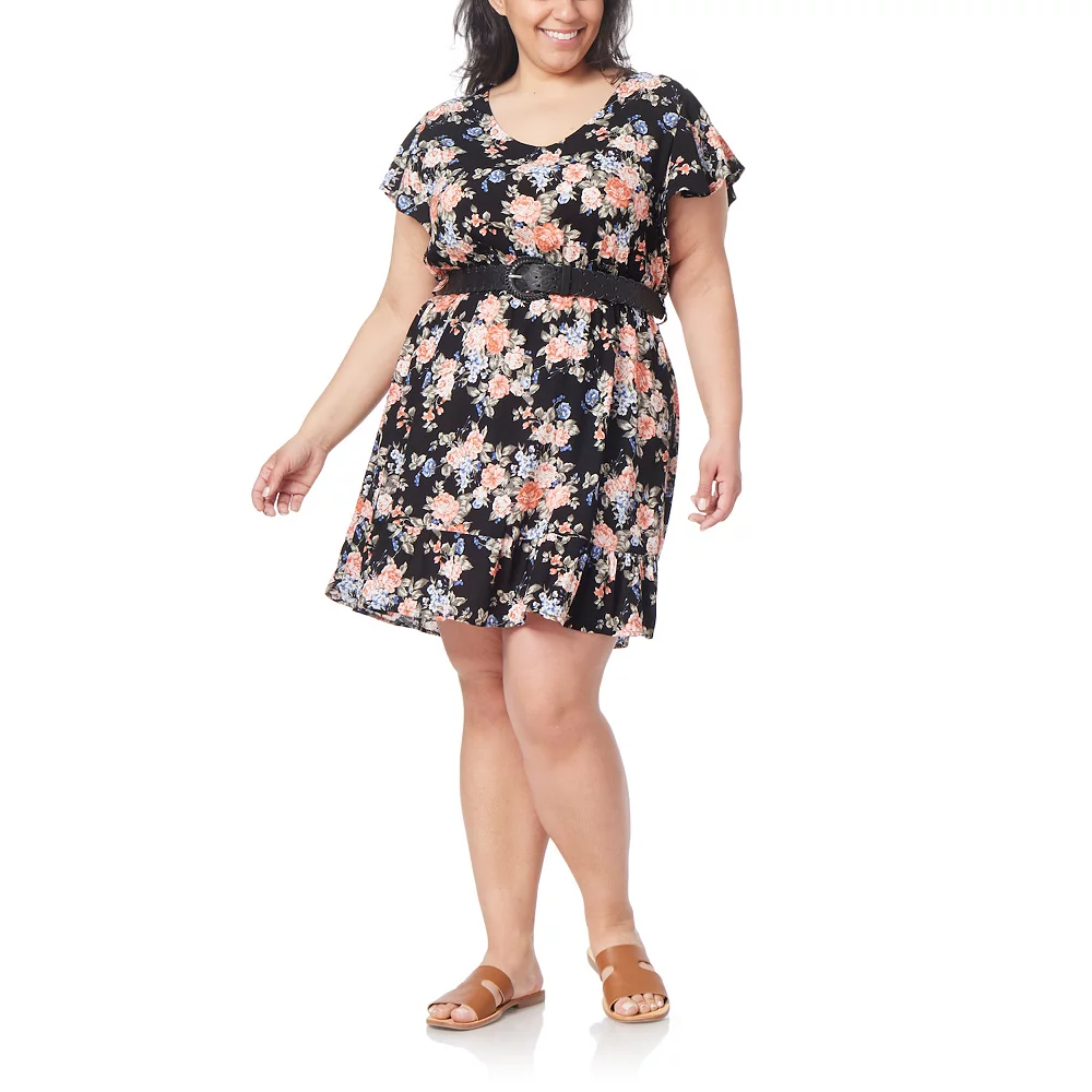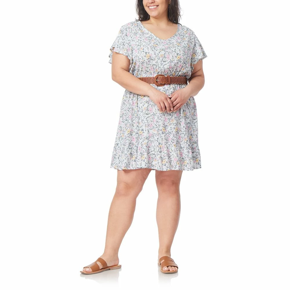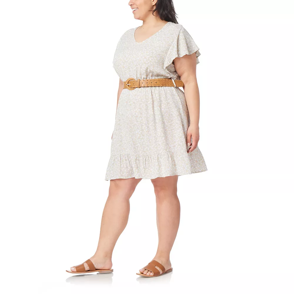 Enjoy the easygoing charm of this juniors’ woven flutter sleeves dress from WallFlower.