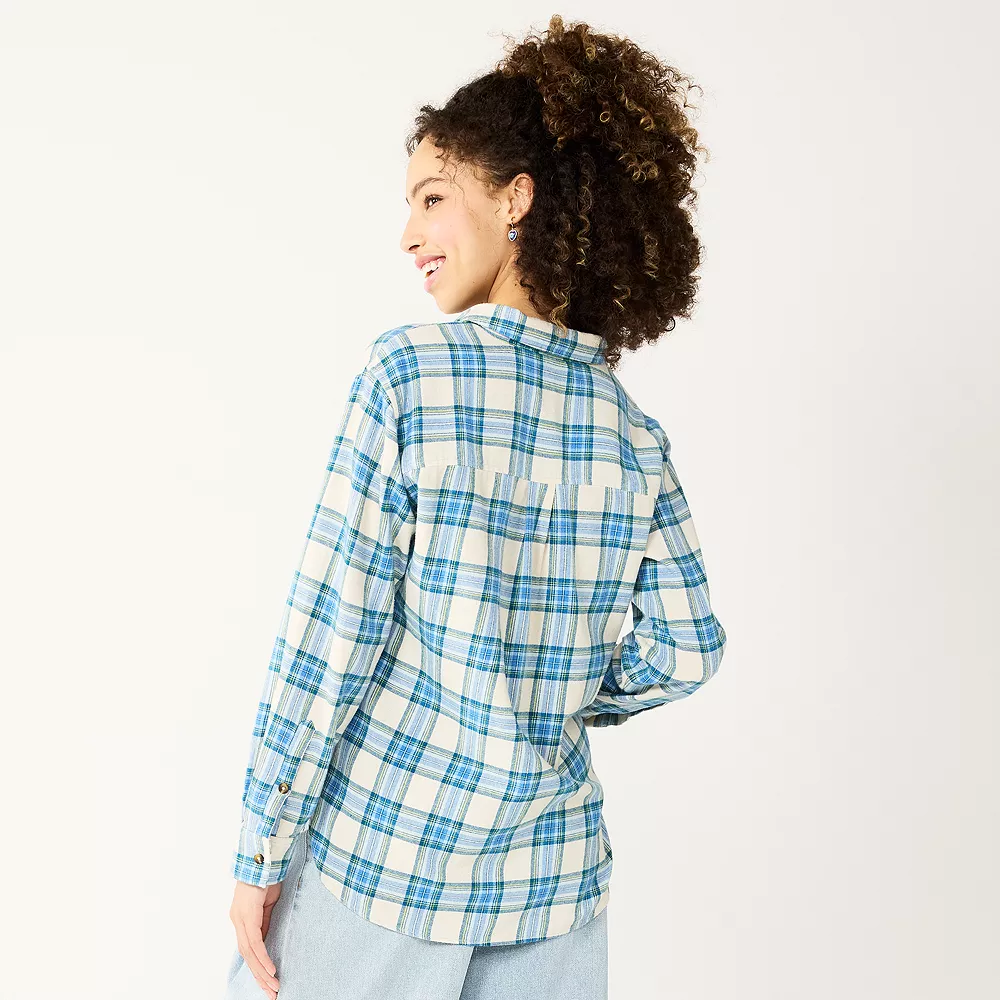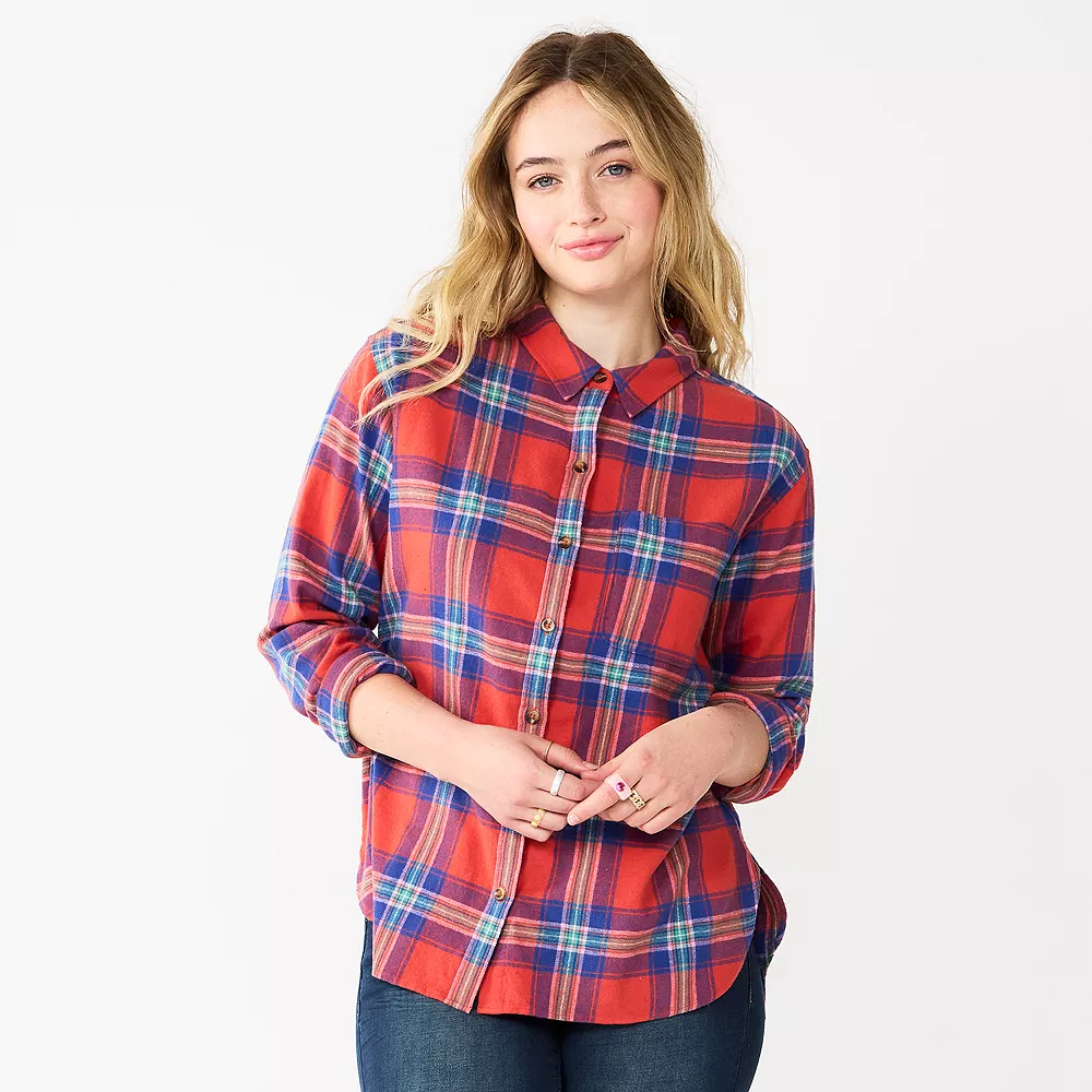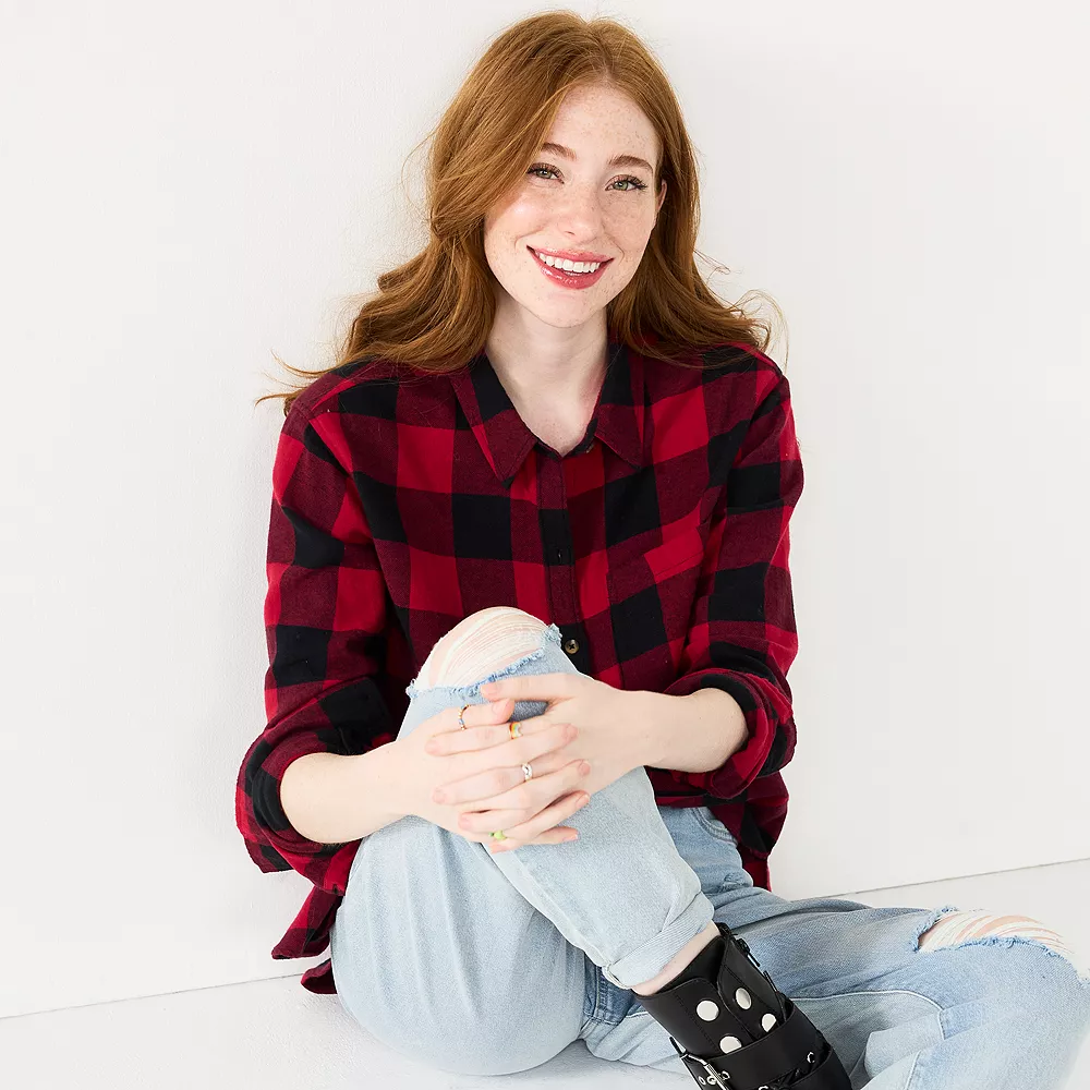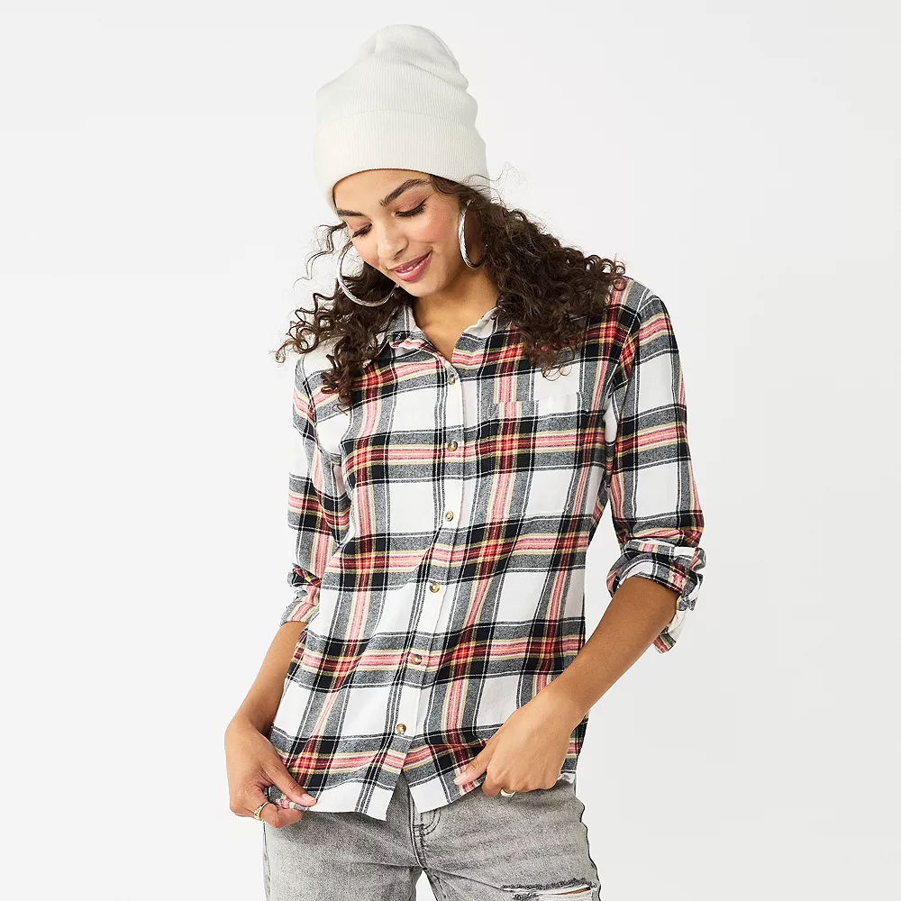 Embrace fall days in style when you rock this juniors’ flannel top from SO.