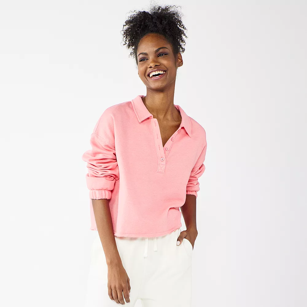 Enjoy the changing seasons in this comfy and cozy long sleeve fleece polo from SO.