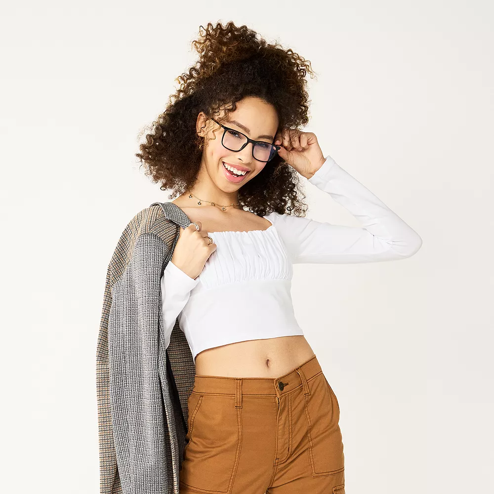 Kick your casual wardrobe up a notch with this cute juniors’ ruched crop top from SO.