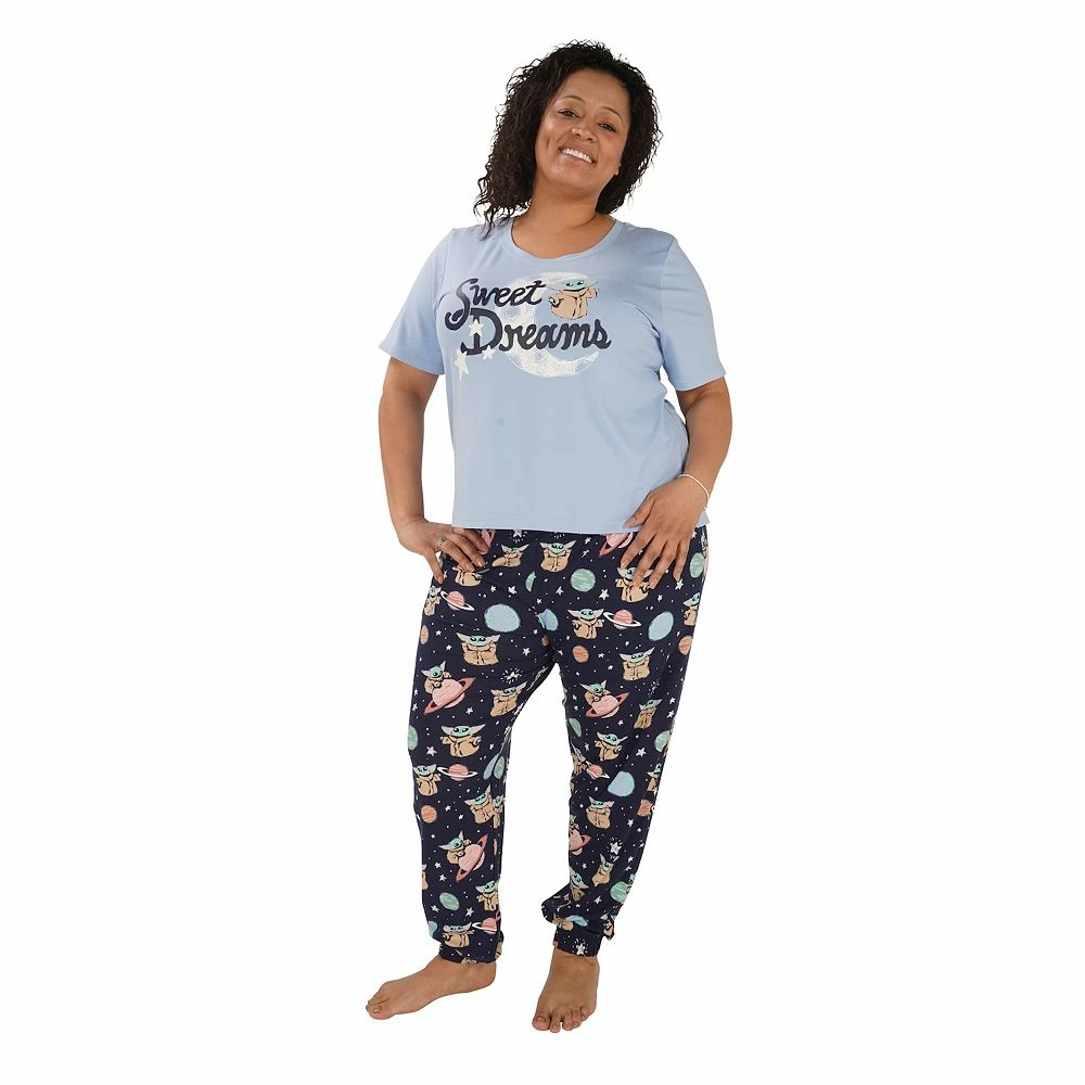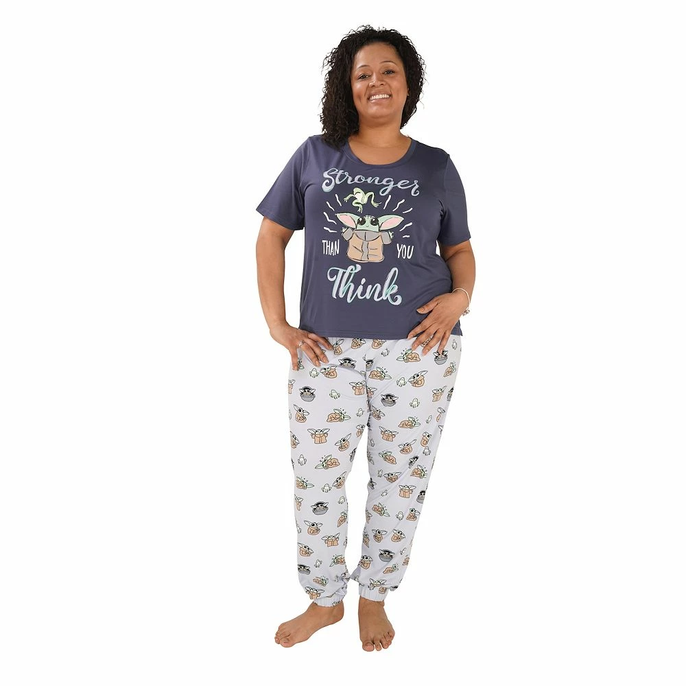 Cozy up in comfort and style with this women’s Nite Nite by Munki Munki Grogu short sleeve pajama top and pajama pants set.