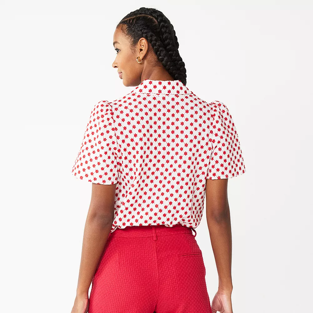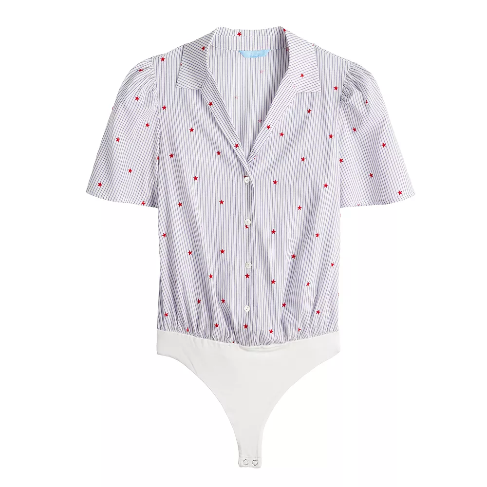 The bodysuit design of this women’s DRAPER JAMES RSVP button-front shirt gives you a polished look that always stays in place.