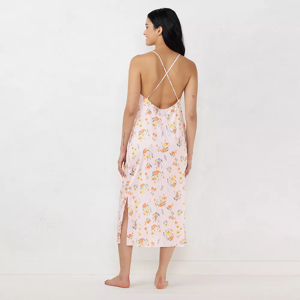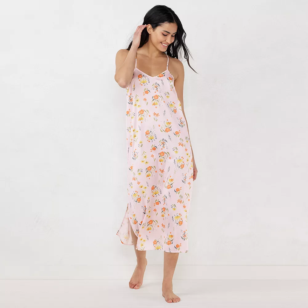 Featuring a luxuriously soft satin construction, this women’s LC Lauren Conrad midi chemise is sure to have you drifting off to sleep in complete comfort and style.
