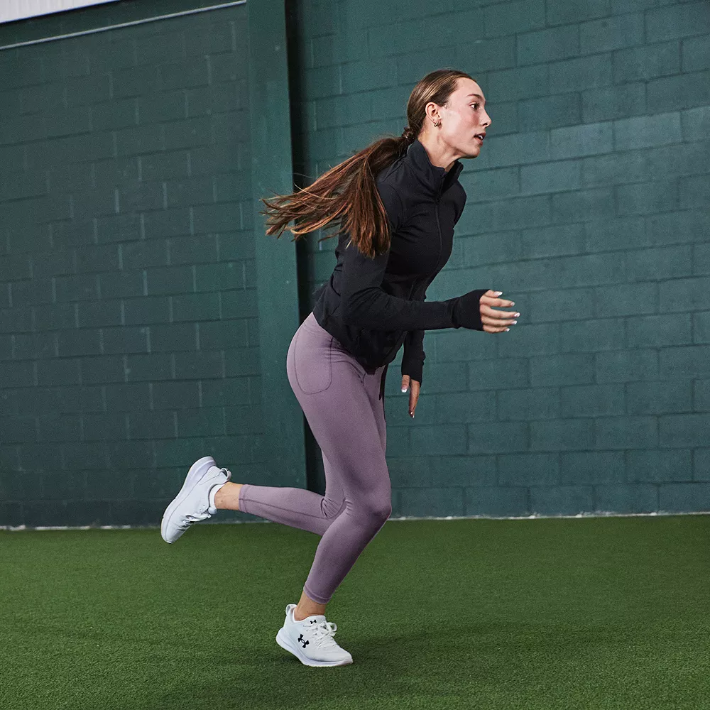 Improve your performance while staying cool and comfortable wearing these women’s high-waisted leggings from Under Armour.